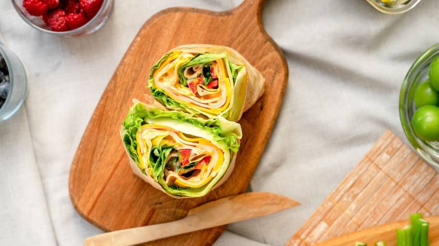 To help you roll your wrap firmly, make a sturdy foundation out of parchment paper or wax. As you roll, lettuce may shred or move, so this is the ideal method to keep it in place. Additionally, it makes packing a quick lunch a breeze!